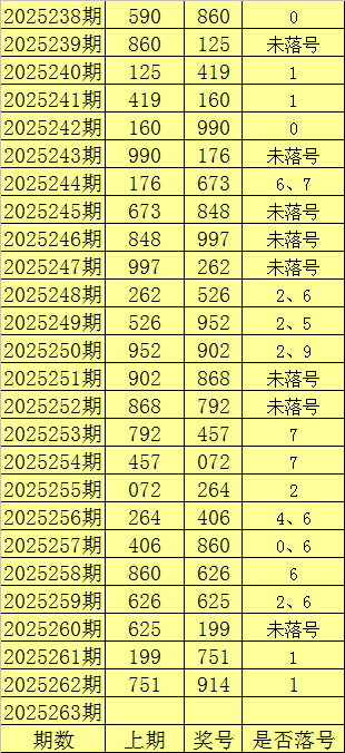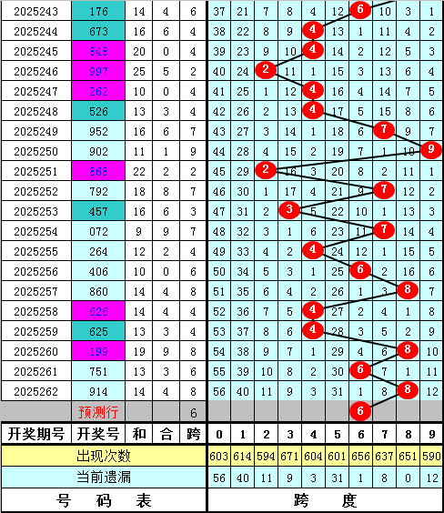 结合其它参数来看,福彩3D第2025263两码关注06、01重点关注06,独胆看好0。